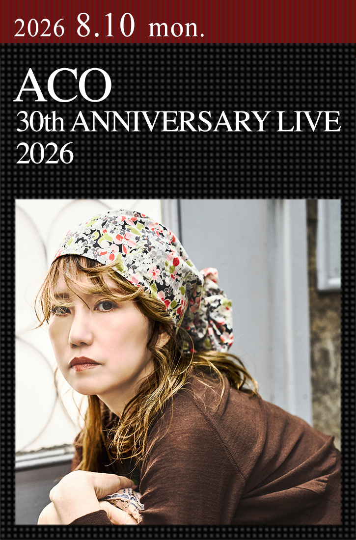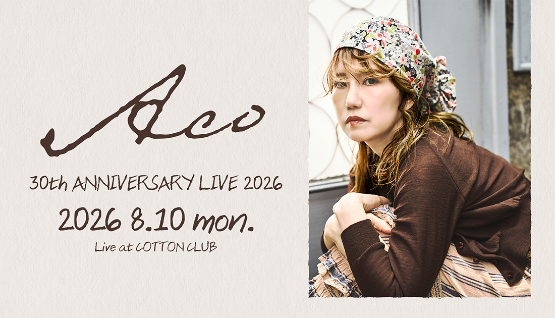 1990年代より独自の存在感で日本の音楽シーンを彩ってきたシンガーソングライターACOが、COTTON CLUBに待望の初登場。デビュー30周年記念のアニバーサリーライヴを開催する。1995年「不安なの」でデビューし、99年には砂原良徳(ex 電気グルーヴ)と共作した「悦びに咲く花」がヒット。ほか、Dragon Ashの「Grateful Days」へのゲスト参加やエイドリアン・シャーウッドとのコラボレーションでも話題を集めてきた。3月31日には配信シングル「いまのぜんぶ」をリリースし、5月にはベストアルバムを発売予定。今回の公演はバンド編成によるオリジナルアレンジを再現するスペシャルライヴとして、代表曲の数々とともに30年の軌跡を辿る特別な一夜となる。