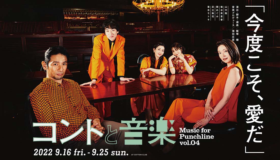 ライヴレストランの雰囲気をそのままに、客席中央の超至近距離で繰り広げられるお芝居と、ひとつひとつの場面(conte)を締めくくる生バンドとキャストの歌によるステージ!「芝居×食×音楽」の会場一体型エンターテインメント『コントと音楽』。第4弾となる「今度こそ、愛だ」は、ひと組の男女が織りなす30年間の物語。過去と現在が交錯しながら進む群像劇を映画監督として多彩な切り口を持つ飯塚健が、落合モトキ、足立梨花、関めぐみ、傳谷英里香、山中聡という個性派俳優陣とタッグを組み、忘れられない恋のはじまりや大切な人生の選択を、軽快なテンポの会話と絶妙な人物構成で描いていきます。共感と笑いが入り交じるそれぞれの場面(conte)が最後にひとつのエンディングを迎える、壮大なコント。その日、その場でしか味わえない、感情と興奮をぜひ味わってほしい。