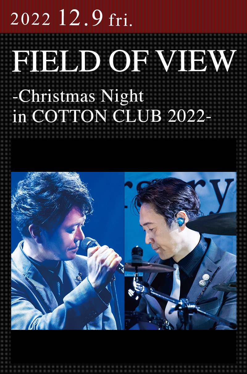 「Last Good-bye」「DAN DAN 心魅かれてく」など数々のヒット曲で知られる4人組ロック・バンドFIELD OF VIEWがコットンクラブにふたたび登場する。1995年、シングル「君がいたから」でデビュー。2ndシングル「突然」はミリオンセールスを記録し、根強い人気を誇るなか、2002年に惜しまれつつ解散。その後、一時的な再結成ライヴはあったものの、デビュー25周年を記念した2020年には、ファン待望のベスト・アルバム『FIELD OF VIEW 25th Anniversary Extra Rare Best 2020』を、そして今年は20年ぶりとなるニュー・シングル「きっと」を発表した。ホリデーシーズンに響く、浅岡雄也のハイトーンボイスをラグジュアリーな空間で堪能したい。