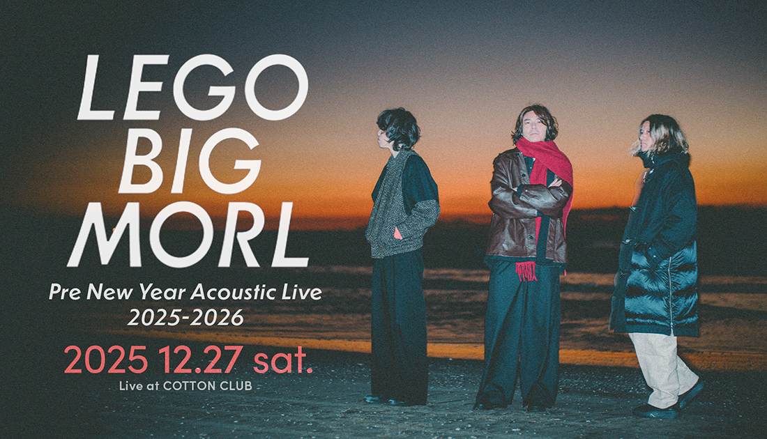 エモーショナルなサウンドで人気を集めるロック・バンド “LEGO BIG MORL”が、2025年の締めくくりにコットンクラブへ登場!2006年より活動を開始し、2009年に1stアルバム『Quartette Parade』を発表。メロディアスで疾走感あふれる音作りを軸に、繊細なロックを聴かせる圧巻のパフォーマンスで注目を集めてきた。2019年より現3人体制となり、2022年には再メジャーデビューを果たし、メジャー復帰作となるフルアルバム『kolu_kokolu』をリリース。今回も吉田昇吾 [UNCHAIN]を迎え、年内最後を飾る特別なアコースティック・ライヴを実施。恒例となっているカバー曲も交え、プレミアムな一夜を届ける。