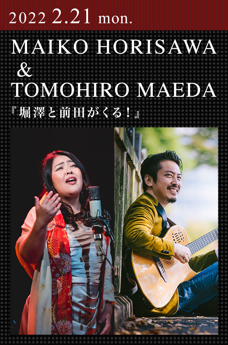 NHK大河ドラマ「麒麟がくる」劇中の歌声で脚光を浴びた実力派ヴォーカリスト堀澤麻衣子が初登場!日仏の活動で、独自の演奏スタイルを生み出す 盟友ギタリスト前田智洋との『堀澤と前田がくる!』ツアー・ファイナルをコットンクラブで飾る。2014年、カーペンターズやセリーヌ・ディオンなどを手がける音楽プロデューサー、スティーヴ・ドーフと共作した『Kindred Spirits -かけがえのないもの-』でメジャーデビュー。日本や海外でライヴ活動を展開するほか、出雲大社など全国の神社にて歌唱奉納公演も行なっている。2020年、ハリウッド作曲家ジョン・グラムが音楽を担当した大河ドラマ「麒麟がくる」劇中歌のヴォーカリストに抜擢され、作品に参加。前田はギターとアレンジを担当している。本公演では大河の楽曲をはじめ、新曲や海外作曲家が堀澤へと託した名曲も披露。これまで幾度となくライヴで共演を重ね、息の合った名演を繰り広げてきた二人の感涙ステージを体験したい。