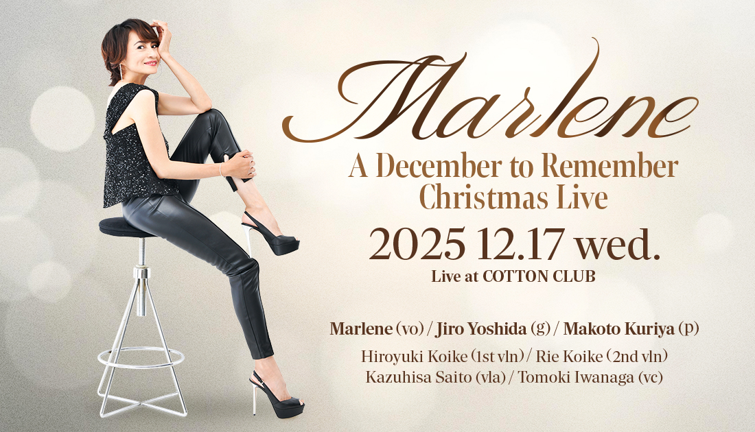 19歳でフィリピンから来日以来、「It’s Magic」をはじめ数えきれないほどの名曲を携え、ジャズ/フュージョン界を牽引してきたマリーンが、今年もクリスマス・シーズンを華やかに彩る。彼女を中心とする3人組ドリーム・ユニット“THREESOME”は、シンディ・ローパーやセルジオ・メンデスなど、数多くのミュージシャンとのコラボレーションを重ねてきたギタリスト・吉田次郎と、名ジャズ・ピアニストにして『エヴァンゲリオン』シリーズのサウンドトラックにも参加するクリヤ・マコトにより、2014年に結成。日本のみならず、ニューヨークやロンドンでもライブを重ねてきた。今回の公演では、さらにストリングスを加えた豪華編成で、時代を超えた名曲の数々をエレガントかつリリカルに届ける。