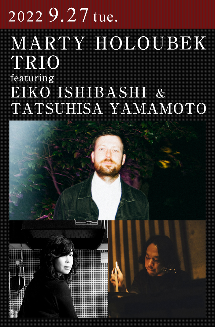 オーストラリアから日本に根を下ろし、今や日本音楽界の重要なポジションを担う鬼才。SMTK、Hishakaku Quartetの共同リーダーも務めるベース奏者のマーティ・ホロベックが6月リリースのニュー・アルバム『TRIO III』を携えて登場する。今回のメンバーは『TRIO I』、『TRIO II』から一新。シンガーソングライターとしての活動をはじめ、映画『ドライブ・マイ・カー』サウンドトラック、舞台、展覧会など多彩なフィールドで活動する石橋英子がピアニストに。独創的なソロや即興演奏を軸に、ジム・オルーク、青葉市子、UAなどとの共演でも知られる山本達久がドラマーに起用された。ブルーノート東京で開催された「石橋英子 BAND SET」公演のメンバーでもある3人による即興音楽の新世界に、限りなく期待が高まる。