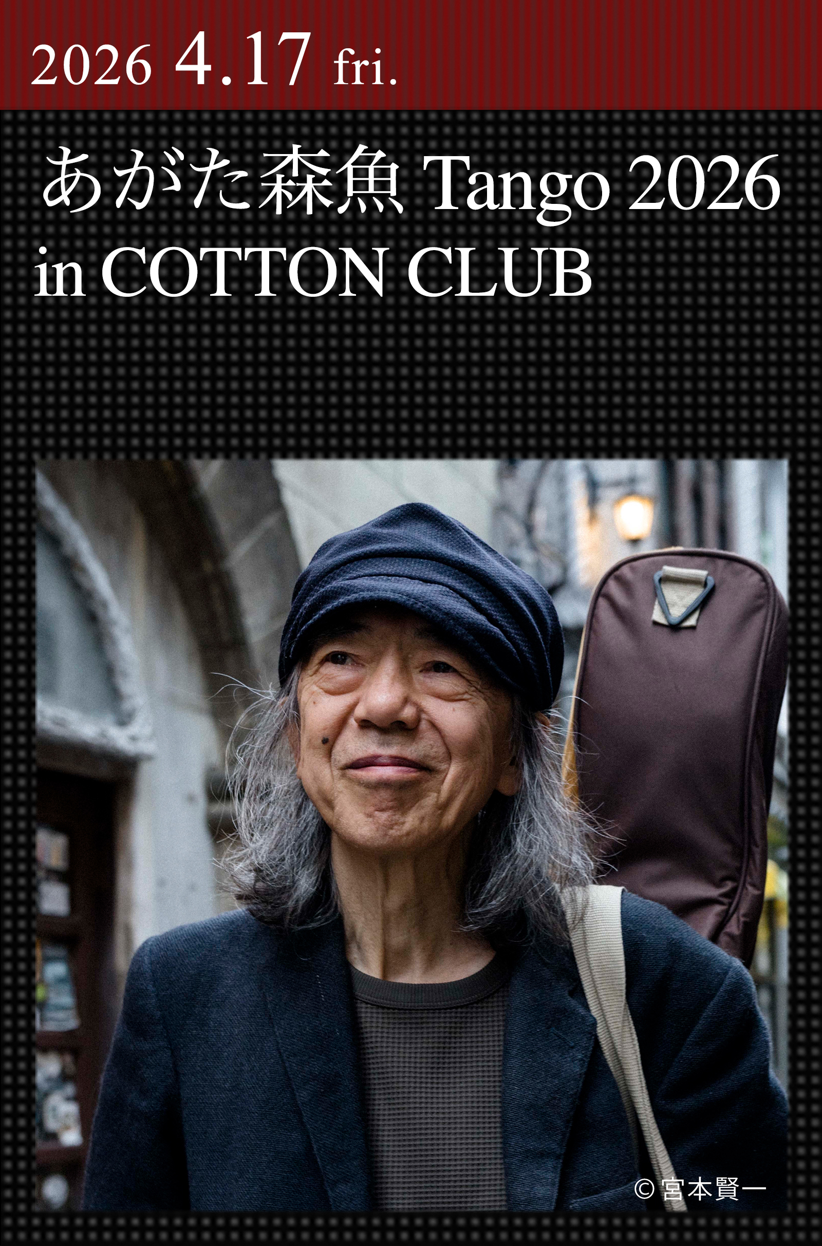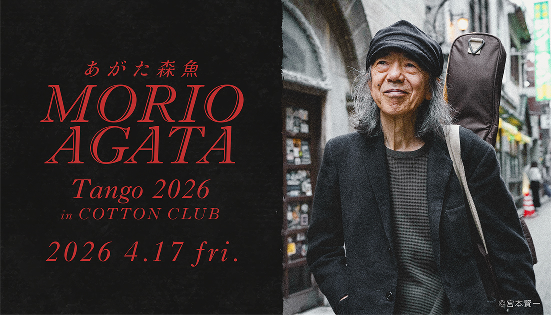 2025年12月『小樽くん2025』、2026年2月『ひっぴいくんHELP』を連続リリース。半世紀以上にわたって精力的な活動を続けるシンガーソングライター、あがた森魚が待望の初登場を果たす。1972年にキングレコード内レーベル<ベルウッド・レコード>の第一弾リリース『赤色エレジー』でデビュー、当時としては珍しいフォーク系でメガヒットを記録。アメリカのフォークやロックの影響を受けつつも、大正~昭和のロマンティックな大衆文化を彷彿させる独自の世界観を表現し、2022年には【50周年音楽會 渋谷公会堂】を開催した。フォークロック、テクノ/ニューウェイヴ、タンゴと時代ごとにサウンドの変遷を繰り広げてきたあがただが、今回は「バンドネオンの豹」などのタンゴ期をテーマにした公演となる。