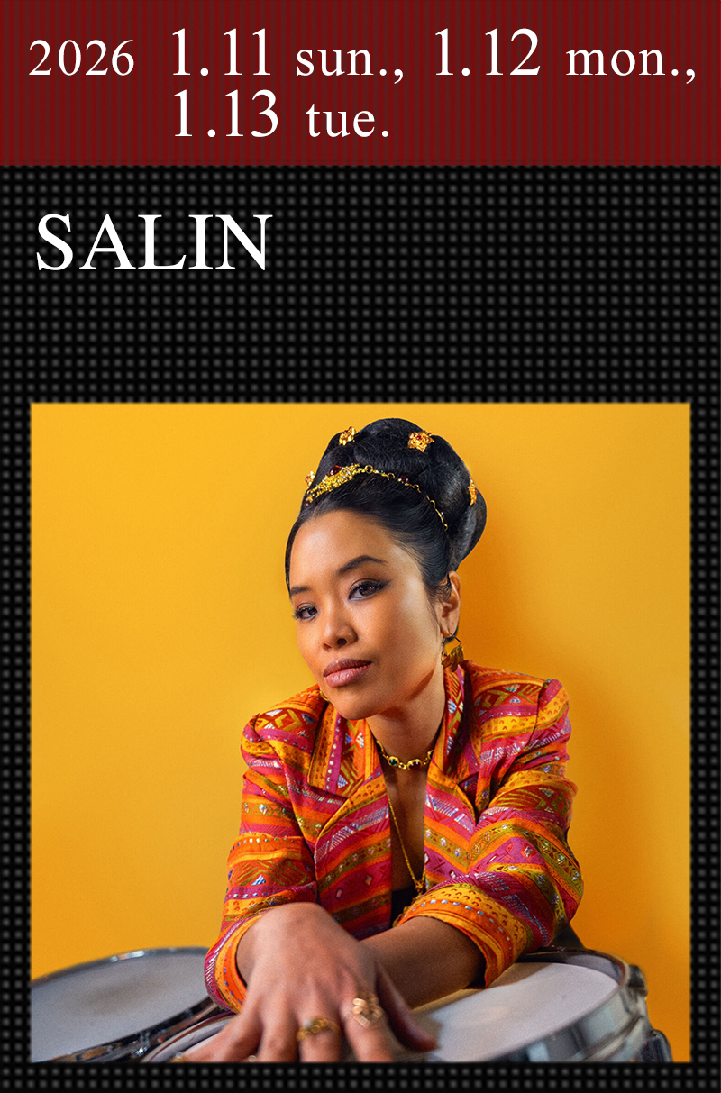 ユセフ・デイズのセントラルパーク公演ではオープニングアクトに登場。タイと西アフリカのサウンドの融合に取り組んだニューアルバム『Rammana』も話題を集める打楽器奏者/作曲家/プロデューサー、サリン(SALIN)が遂に初来日!タイのバンコクで育った彼女は10代半ばから数多くのアーティストのセッション・ドラマー兼サイド・ミュージシャンとして活動を始め、米国のオハイオ州に移住後はジャーナリズムを専攻しながら、ジョジョ・メイヤー、デイヴ・ウェックル、ピーター・アースキンらに師事。その後モントリオール国際ジャズフェスティバルで称賛を浴び、現在はカナダを拠点に精力的な活動を繰り広げている。唯一無二の音の旅へと案内するサリンの“アフロ・イサーン・ソウル”をライヴで堪能したい。