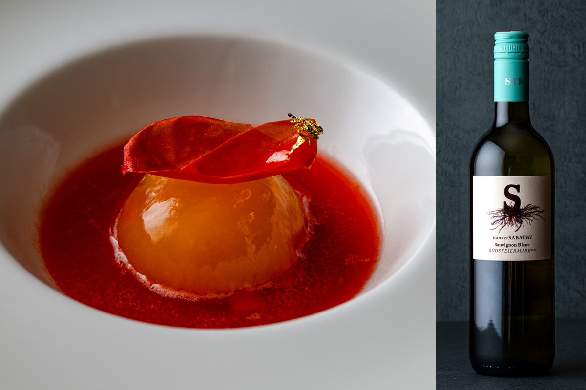 まさに驚きのペアリング。ソーヴィニヨンブラン特有の青々しさ、果実の凝縮感がオレンジ、トマトの旨みと甘みをより深める。