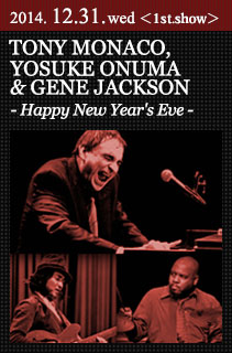 最高に熱くソウルフルなセッションが大晦日に行なわれる。トニー・モナコ、小沼ようすけ、ジーン・ジャクソンによる黄金トリオが、結成の地・コットンクラブに戻ってくるのだ。トニーは“ジャズ・オルガンの神様”、ジミー・スミス最後の愛弟子で、パット・マルティーノら数々の伝説的ミュージシャンと共演。「炎のオルガン奏者」の異名をとる。小沼は日本を代表するギタリストのひとりで、4年ぶりのニュー・アルバム『GNJ』もベスト・セラー中。ジーンは、ジャズ界の重鎮ハービー・ハンコックが長年重用した名ドラマー。2013年リリースのアルバム『ライブ・アット・コットンクラブ, ジャパン』からちょうど1年、さらに加速するグルーヴを、ぜひクラブで体感してほしい。