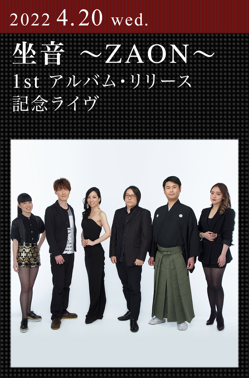 「母国の音楽、楽器は究極のオリジナリティ。世界へアプローチするのはこれしかない」という想いから、作編曲家/マルチ・キーボーディストの安部潤を中心に結成された和楽器フィーチャリング・バンド、“坐音 ~ZAON~”がファースト・アルバム『坐音 ~ZAON~』のリリース記念ライヴを行なう。吉永真奈 (箏)、田嶋謙一 (尺八)の演奏に安部が感銘を受けたことをきっかけに、中園亜美 (sax)、田中晋吾 (b)、川口千里 (ds)を加えた6人組として2019年にスタート。エモーショナルな音作り、実力派ならではの磨き抜かれたアンサンブルでファンを魅了してきた。和楽器の鳴り、美しさ、可能性を最大限に生かす新しい“フュージョン・ミュージック”の世界を至近距離で体感したい。